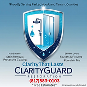 ClarityGuard removes stubborn hard-water stains from shower glass, porcelain tile, and windows using professional restoration products and 20+ years experience. Trusted by homeowners throughout Weatherford, Azle, Hudson Oaks, Willow Park, and Granbury across Parker, Hood, and Tarrant Counties.